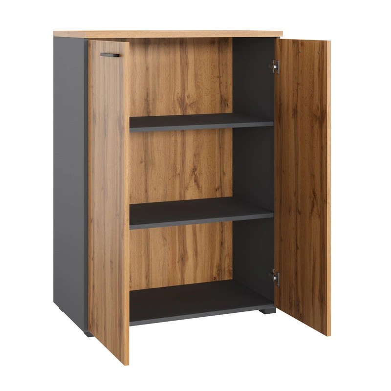 Шкаф для документов 786х420х1080 мм Артикул 241H011-006. Верхняя крышка стеллажа выполнен из ЛДСП толщиной 22 мм с кромкой из ABS-пластика толщиной 2 мм по передней стороне. Остальные детали, включая заднюю стенку, изготовлены из ЛДСП толщиной 16 мм с кромкой из ABS-пластика толщиной 1 мм и 0,5 мм. Стеллаж установлен на регулируемые по высоте опоры чёрного цвета. Материал и толщина каркаса и его кромки — ЛДСП толщиной 16 мм, кромка из ABS-пластика толщиной 1 мм и 0,5 мм. Материал и толщина задней стенки — ЛДСП толщиной 16 мм. Eкомплектоваy дверями ЛДСП. Количество ниш для папок — 3 шт.