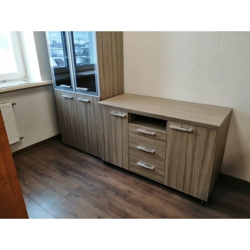 Корпус шкафа изготавливается в основном цвете. Шкаф уже укомплектован верхним порталом, артикул 108808, что придает шкафу солидность.