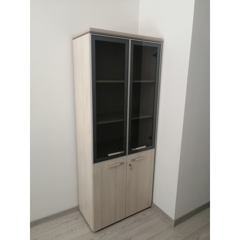 Шкаф для документов комбинированный. Стекло графит в алюминиевой раме. Задняя стенка выполнена из ЛДСП толщиной 18 мм в основном цвете, например на фото - в цвете Акация Светлая. Все петли с доводчиками.