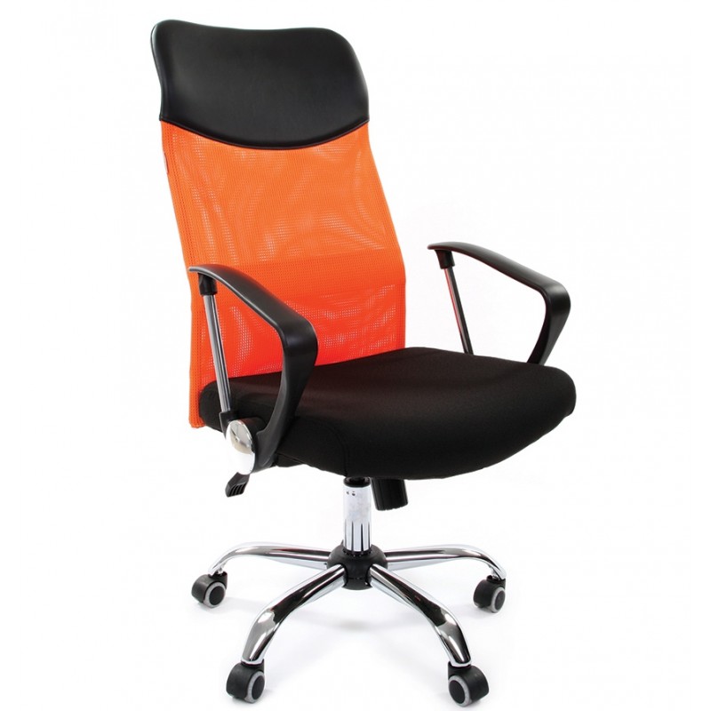 Кресло для руководителя CHAIRMAN 610 с сетчатой спинкой и мягким сидением, удобные подлокотники. Металлическая крестовина (Пятилучье). Вариант обивки ткань TW.