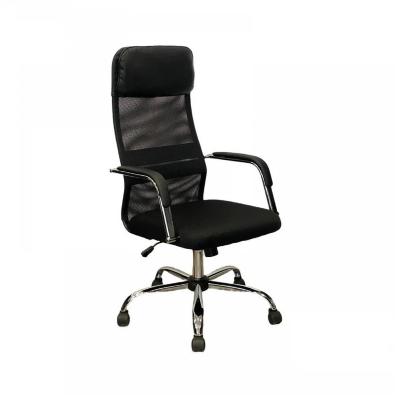 Кресло для руководителя SitUp WORK Chrome (сетка Black/Black) с металлической крестовиной...