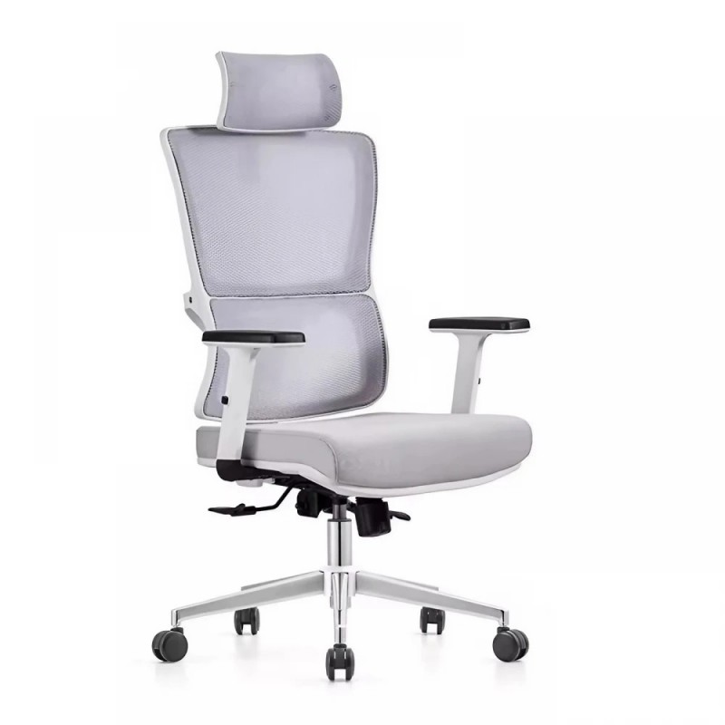 Кресло для офиса SitUp VICTORIA Gray с сетчатой спинкой и мягким сидением, удобные подлокотники. Металлическая крестовина (Пятилучье). Вариант обивки ткань TW.