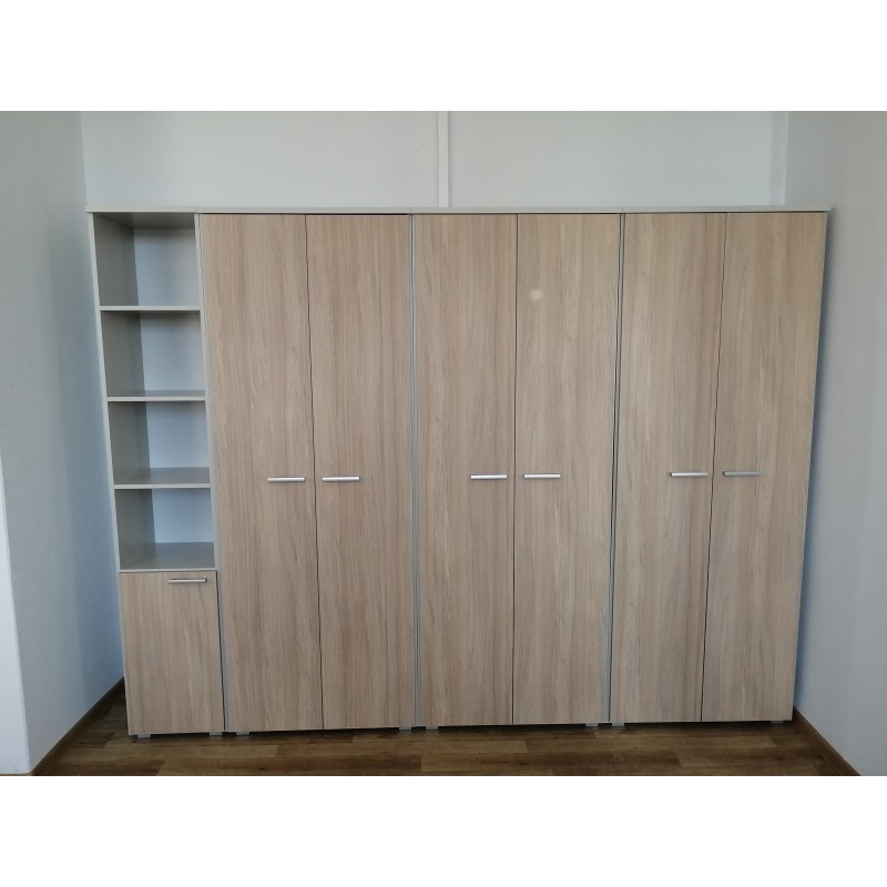 Набор шкафов для офиса. Серия Смарт. Артикул 76h005-3-76Н305. Набор шкафов для офиса состоит из широкого шкафа для документов с дверцами на всю высоту в количестве 3 шт и одного узкого шкафа с низкой дверцей. Высота 2100 мм.